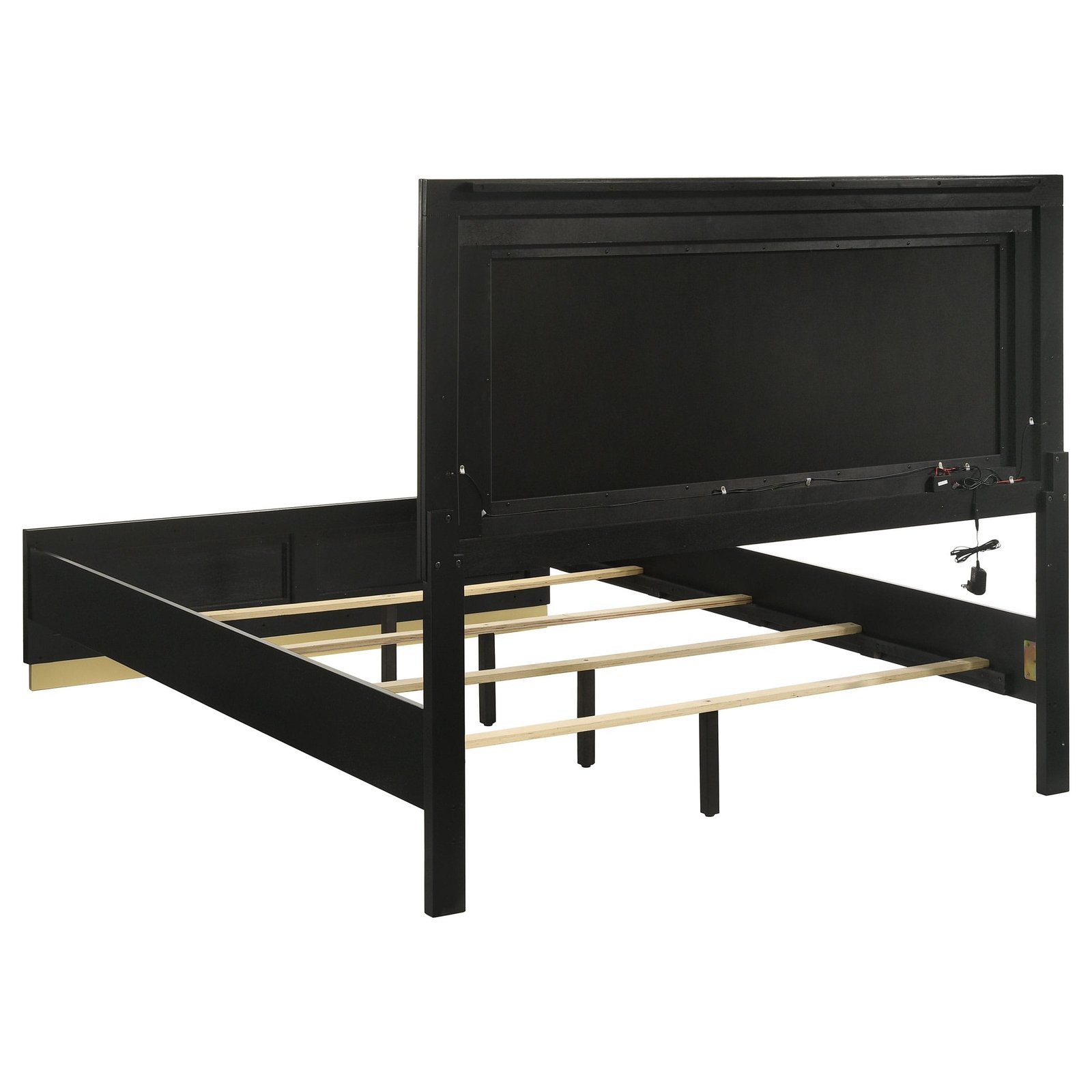- Upholstered headboard with integrated touch LED lighting adds a soft glow and modern flair