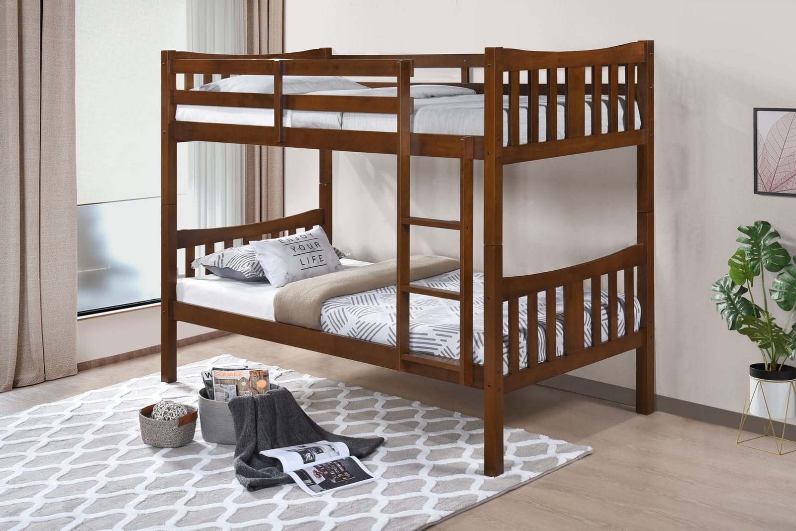 Sized at 79 in long × 42 in wide × 62 in high, the bed fits two twin mattresses and is built with quality in mind — ideal for kids’ rooms, guest rooms, or any area where space is at a premium. With its modern & contemporary design, the Caribou bunkbed blends practicality with aesthetic appeal, giving you both function and form in one versatile piece.