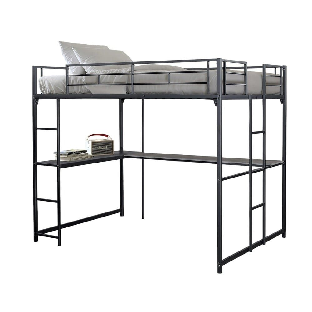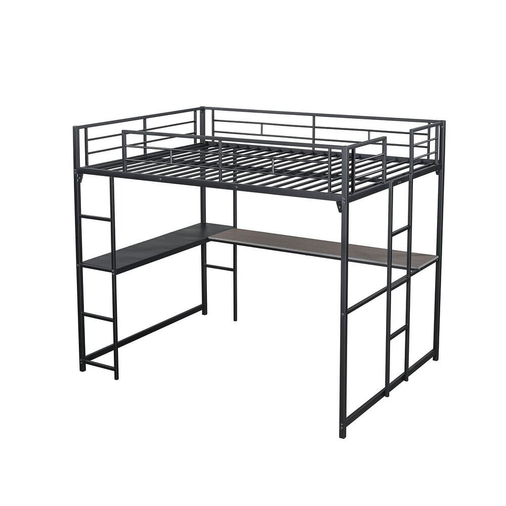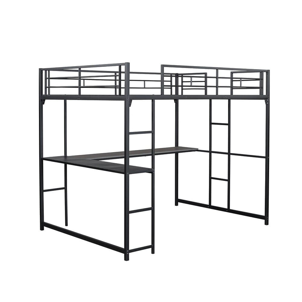 Maximize both space and function with this Metal Full Loft Bed with L-shaped Desk Workstation in clean white finish. Built fully of metal, the design offers strong durability and a sleek modern look. The bottom section features a built-in L-shaped workstation, ideal for studying, working, or crafting. With two attached side ladders, access to the top bunk is safe and convenient.