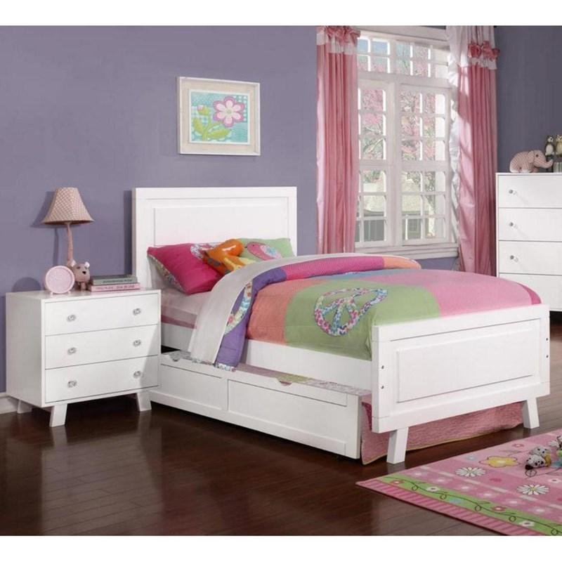 The Dakota Bed from Generation Trade will make a great addition to your child’s bedroom. It features a panel style headboard and footboard. It has a clean white finish. It is composed of a headboard, footboard and rails.