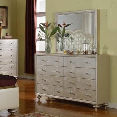The Dynasty dresser mirror features a beautiful white finish. This piece will sure bring a contemporary look to any bedroom.