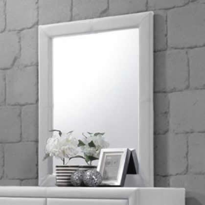 The Enzo Dresser Mirror comes in padded white faux leather upholstery. It can be paired with matching Dresser.