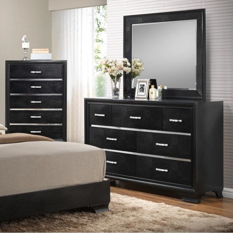 The Equinox Dresser Mirror will look great atop the matching Equinox Dresser. It has a beautiful crocodile pattern frame and a beveled mirror.