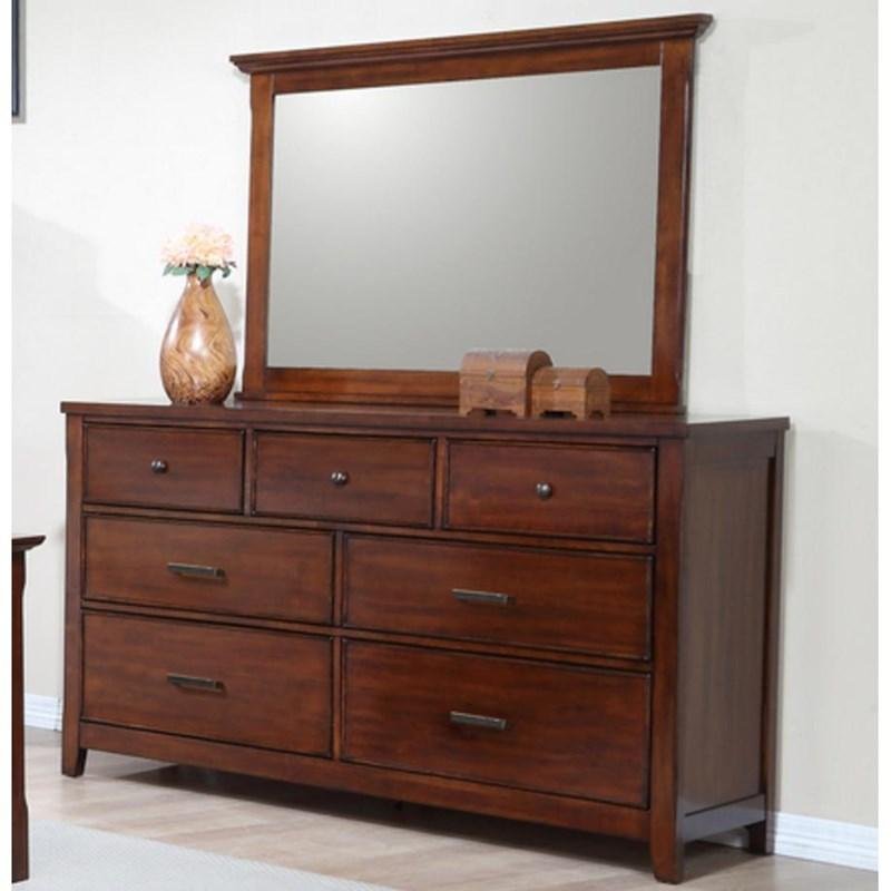 The Kingston Dresser Mirror comes in a rich Tobacco finish. It features a wooden frame and can be paired with matching Dresser.