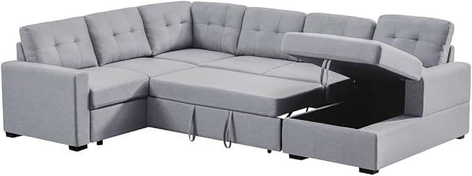 Upgrade your living room with this L Shaped Sectional Sofa – Light Grey Sleeper with Storage, designed for comfort, practicality, and modern living. Whether you need extra sleeping space, a place to store blankets and cushions, or ample lounging room, this sectional delivers on all fronts.