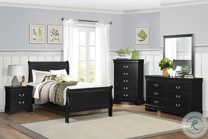 Louis Philippe Wooden Panel Bedroom Set color Black & Dark Brown