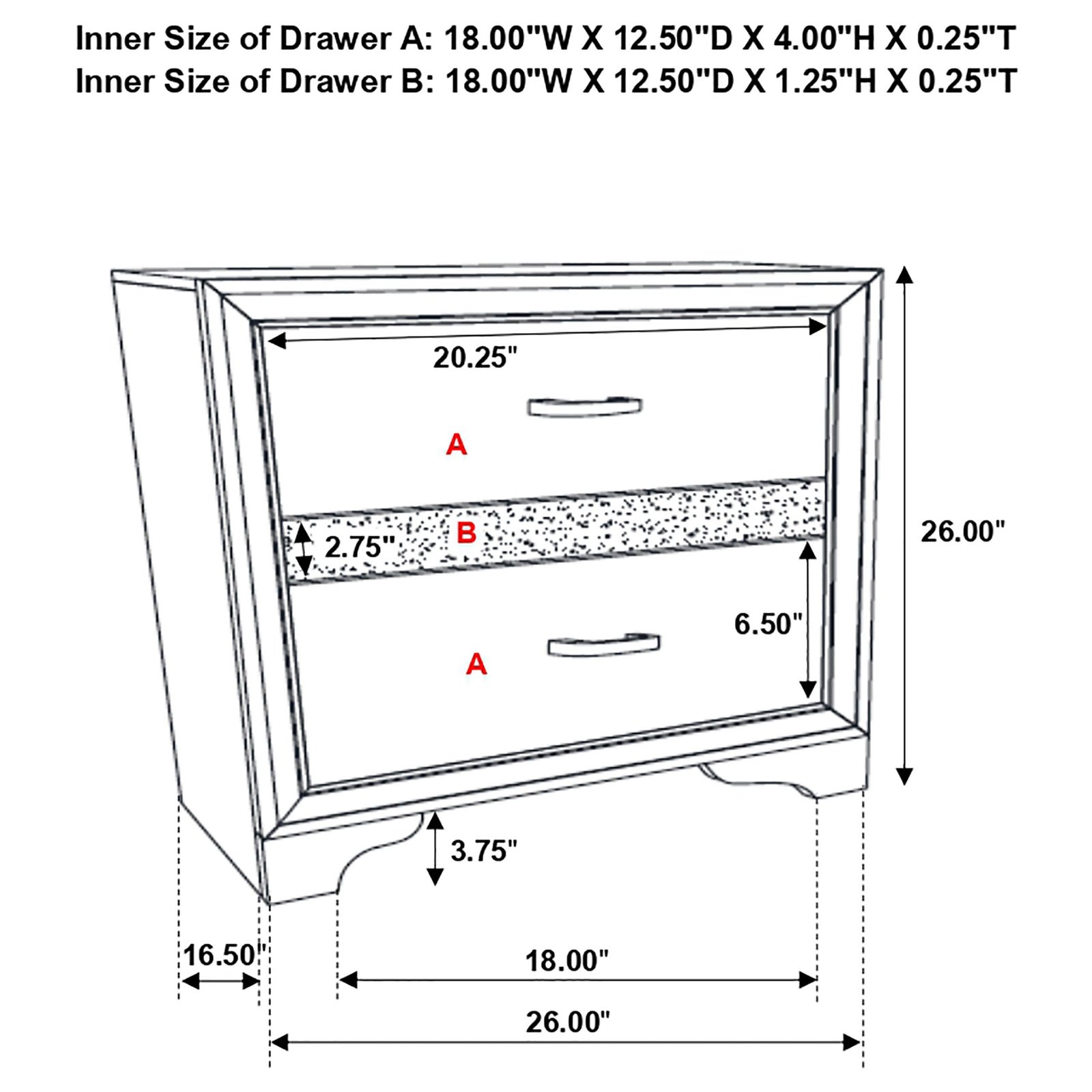 - Nightstand offers two drawers with smooth full-extension glides for easy access