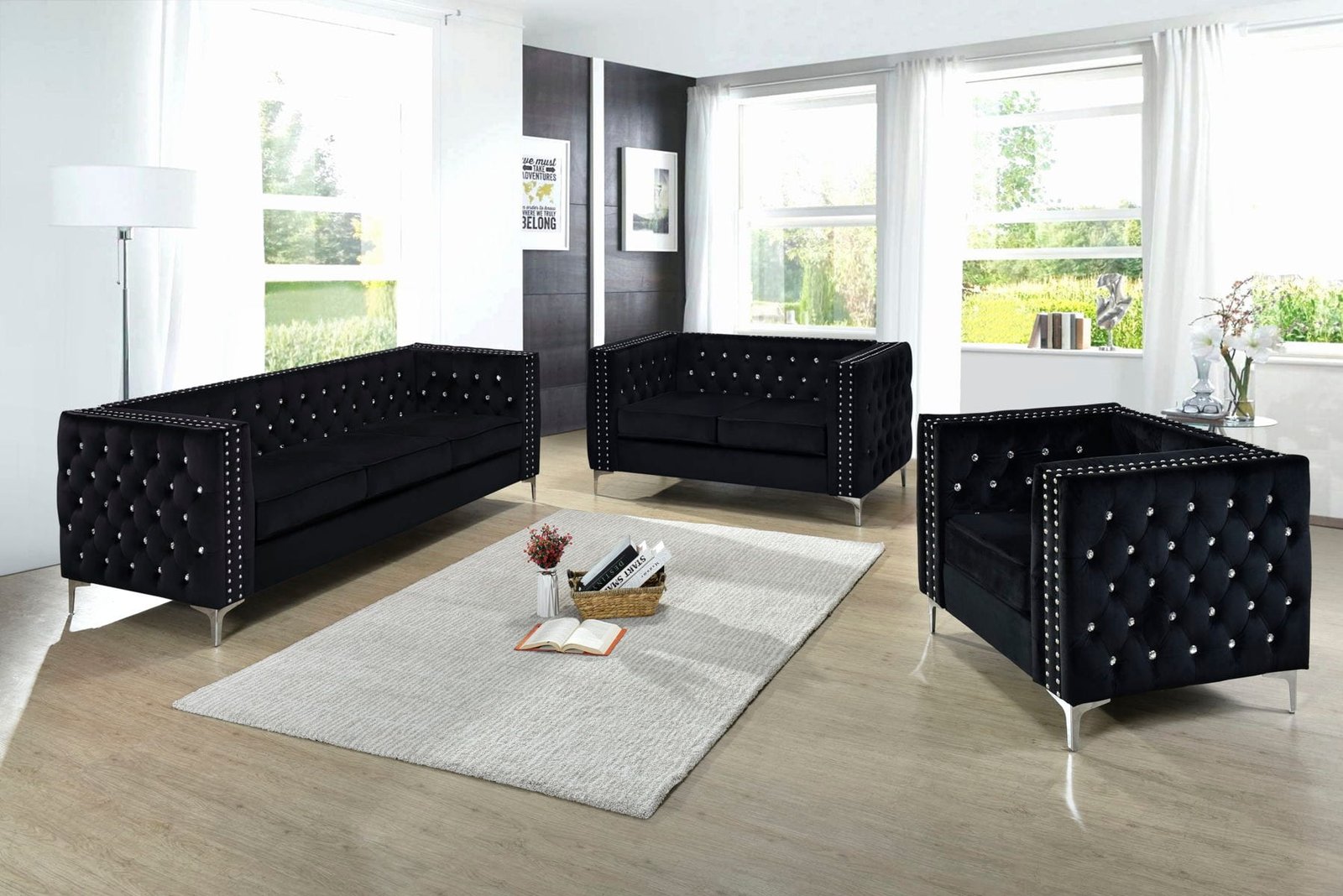 Vogue 3 pieces Living Room Set Red & Black