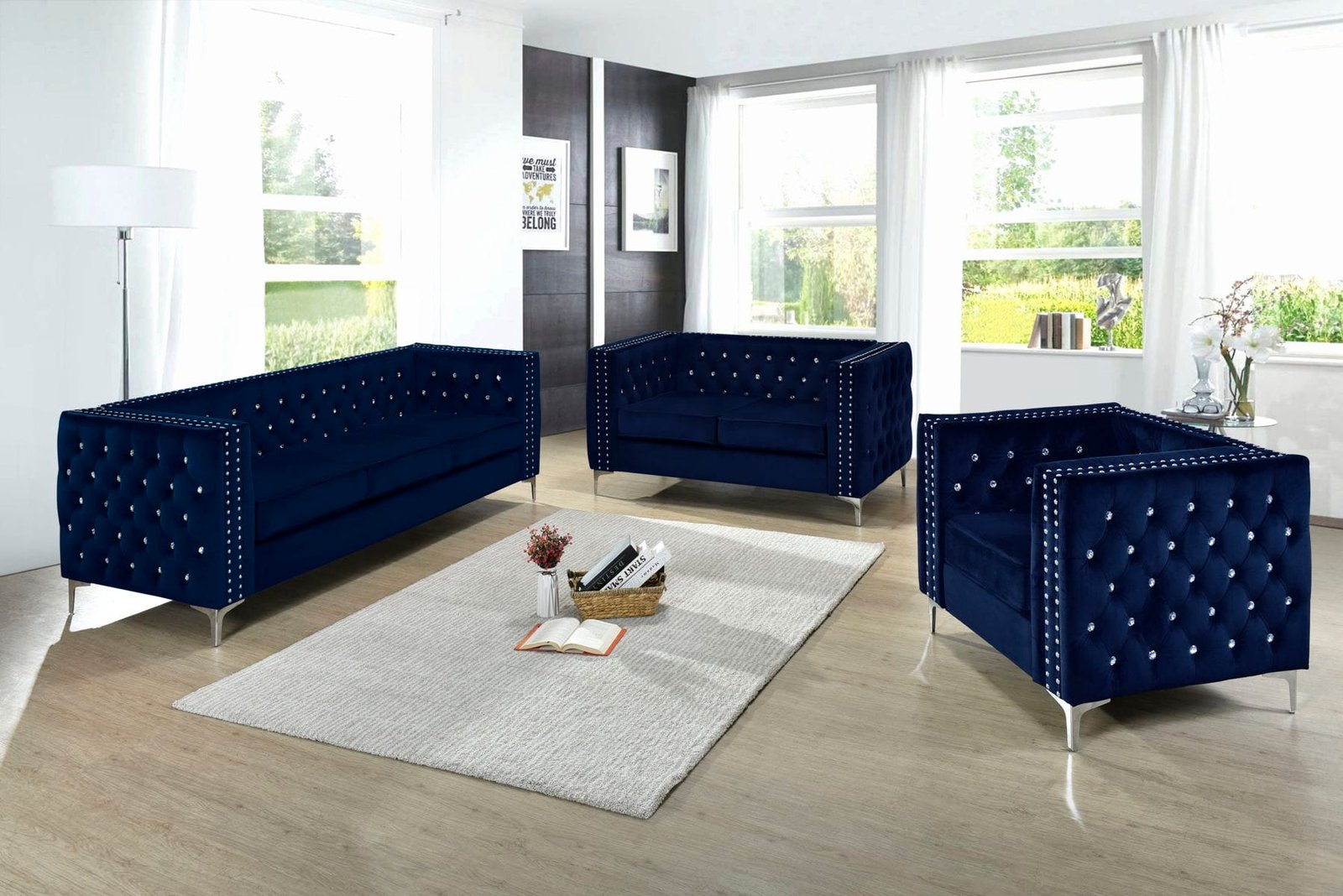 Monaco Livingroom set Blue, Black & Grey