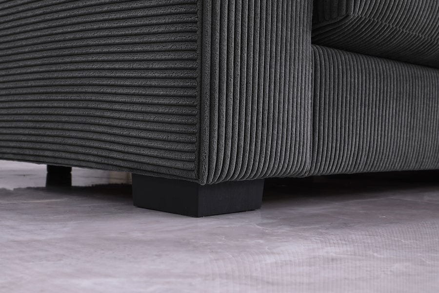 Enhance your living space with our Sectional Set, meticulously crafted for a perfect blend of style and comfort. The luxurious, textured corduroy fabric ensures both tactile pleasure and lasting durability. Designed with relaxation in mind, the sectional features generously padded armrests that invite you to unwind. Carefully positioned for comfort and a sleek aesthetic, the armrests complement the configuration, which includes a chaise on the right-hand side for a balance of lounging space and seating comfort.