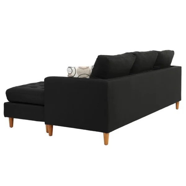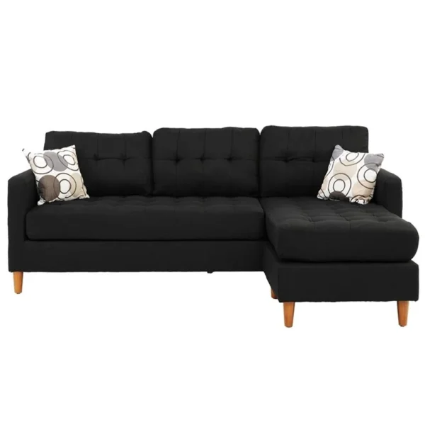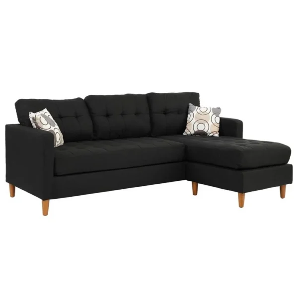 Elegant 2-piece fabric sectional in black, designed with a solid and engineered wood frame. Includes plush seating with 18″ seat height and some assembly required. Perfect for comfortable modern living.