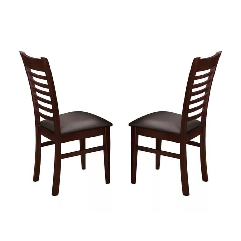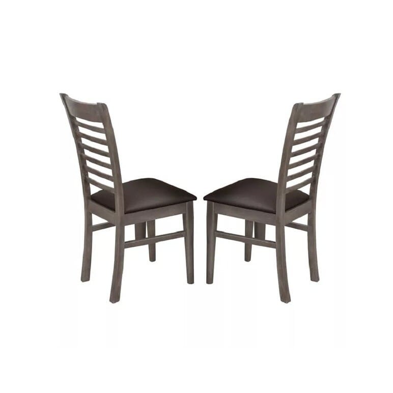 The Ladder Back Dining Chairs complement the table perfectly, featuring a tasteful design that adds a touch of refinement to your dining area. Each chair is adorned with comfortable Black PVC cushions, ensuring hours of comfortable seating during meals and conversations.