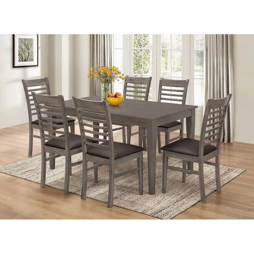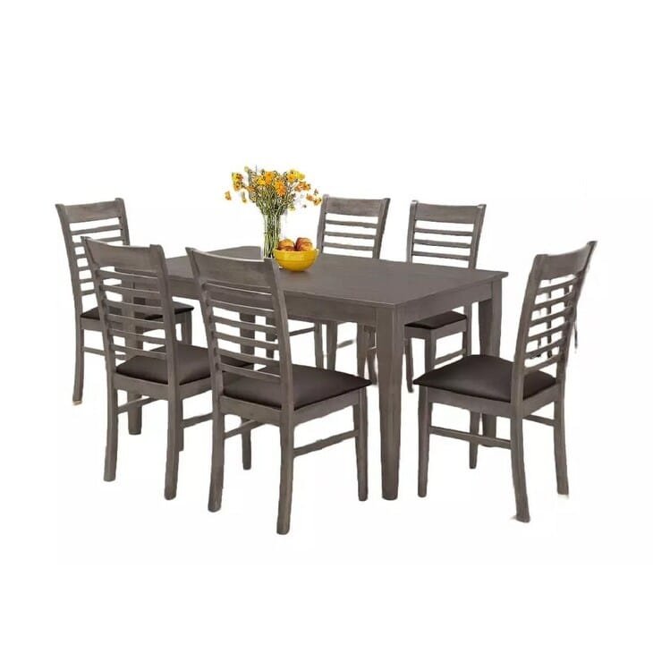 Bring timeless elegance to your dining space with the 7-Piece Wooden Dining Set from Bed Bath & Beyond. Crafted with solid wood components and a durable MDF tabletop, the set combines functionality with comfort—its six ladder-back chairs feature Black PVC cushions perfect for long gatherings. The example finish choices of Cappuccino or Grey offer flexible color options to complement both neutral and bold decors. Spacious enough for six diners yet compact in design, it balances space efficiency with stately presence. With simple assembly required and a classic transitional look, this dining set provides both lasting style and everyday usability