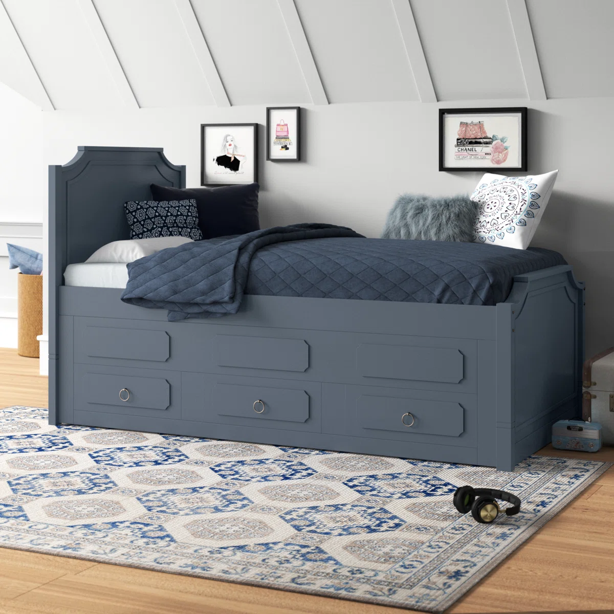 Twin Platfrom Bed With Trundle 3 Drawers Grey