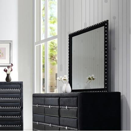 This Vegas dresser mirror from Generation Trade features nailhead trim and black upholstery.