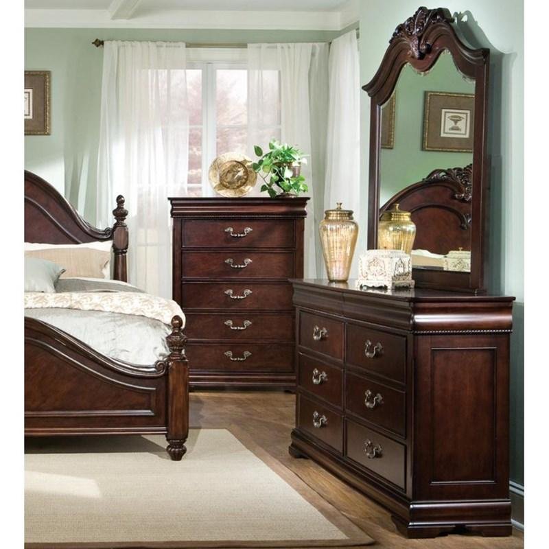 The Westchester Dresser Mirror comes in rich cherry finish and features beautiful carving details on its wood frame. It can be paired with the matching Westchester Dresser.